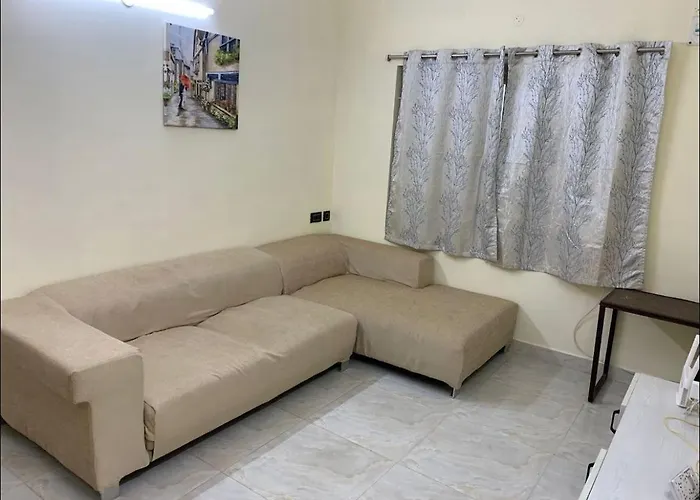 This apartment includes a balcony, a living room, and a fully equipped kitchen with an air conditioner for utmost comfort.